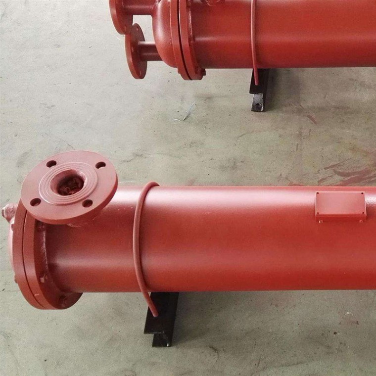 管式冷卻器的熱介質(zhì)從筒體上的接管進(jìn)口,并通過(guò)折疊通道曲折流向接管出口。冷卻器介質(zhì)采用雙管流,即冷卻器介質(zhì)從進(jìn)水口進(jìn)入一半冷卻器管,然后從回水蓋進(jìn)入另一半冷卻器管,進(jìn)入另一側(cè)的水蓋和出水管。在雙管流過(guò)程中,吸收熱介質(zhì)釋放的余熱從出口排出,使工作介質(zhì)保持額定的工作溫度。